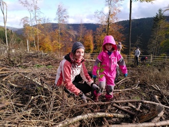 Somit konnten an diesen Tag 1500 Vogelkirschen, Douglasien und Roteichen mit und ohne Einzelschutz gepflanzt werden.