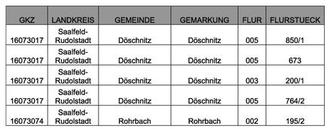 Die Messungen erfolgen in den Gemeinden Döschnitz und Rohrbach von September 2024 bis April 2025 auf den gemäß Anlage aufgeführten Flurstücken. Die Auswahl der Flurstücke ist nach der Geologie im Untergrund erfolgt.