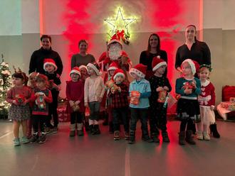 Unsere Weihnachtsfeier am 11. Dezember begann mit einem gemütlichen Frühstück. Anschließend warteten wir gemeinsam gespannt auf die Ankunft des Weihnachtsmannes. Die Kinder sangen Lieder und trugen Gedichte vor, während alle gemeinsam unter dem festlich geschmückten Weihnachtsbaum zusammenkamen.
