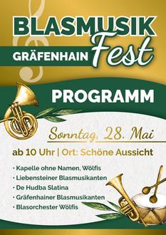 Anlässlich des 135-jährigen Bestehens der Gräfenhainer Blasmusikanten, lädt die Kirmesgesellschaft Gräfenhain e.V. am 28.05.2023 zum Blasmusikfest auf die Schöne Aussicht ein.