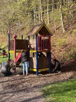 Der Kirmesverein hatte sich den angrenzenden Spielplatz aufs Korn genommen und mit einem frischen Anstrich versehen. Die Mitglieder vom Heimatverein waren am Hahnsgrab und haben wieder Ordnung gemacht. Auch um die Schutzhütte in der Radebreche, was für viele Wanderer ein Ausflugsziel ist. Auch auf dem Turmberg wurde der Silvestermüll entsorgt.