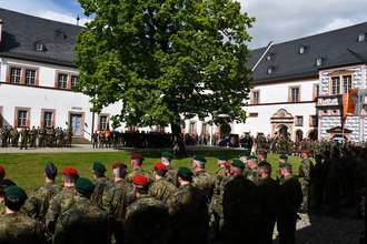 Am 08.05.2025 war Schloss Ehrenstein Schauplatz eines besonderen Ereignisses: Beim 1. öffentlichen Regimentsappell wurden die Heimatschutzkompanien „Sachsen“ und „Thüringen“ feierlich in das Heimatschutzregiment 5 aufgenommen. Gleichzeitig legten die ersten Rekrutinnen und Rekruten des Regiments ihr feierliches Gelöbnis ab.