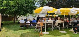 Das diesjährige Gemeindefest am 18.06.2023 lockte wieder viele Besucher in unseren schönen Kirchgarten. Schon beim Gottesdienst, unter schattenspendenden Bäumen, waren alle Plätze besetzt und im Laufe des Nachmittages gesellten sich zu Kaffee und Kuchen noch weitere Gäste dazu.