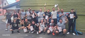 Im Anschluss wurde noch das aus drei Personen bestehende „Stärkste Team“ ermittelt. Team „Lecker Bierchen“ trat gegen das Team „BRC Schweizer Fachpersonal 3.0“ an. Nach Tauziehen, „schwere und leichte Gegenstände schleppen“ und „Hantel halten“ waren beide Teams punktgleich. Da fast alle Teammitglieder auch am Einzelwettbewerb teilnahmen, waren die Kräfte für ein Stechen am Ende, sodass beide Teams verdient Platz 1 belegten.