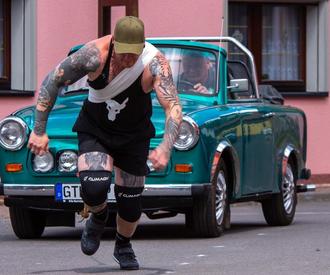 Dritte Disziplin war das Medizinballschocken. Ein sieben Kilogramm schwerer Ball musste rückwärts so weit wie möglich geworfen werden. Matthieu Schorcht schaffte 8,72 Meter, Hagen Krauledat 7,29 Meter und Brendan Seiler 6,81 Meter. Bei den Frauen warf Sydney Hollering mit 7,35 Meter am weitesten. Nachdem bei Benedikt Hertel der erste Versuch ungültig war, schockte er im zweiten Durchgang mit 13,78 Meter rund einen Meter weiter als Alexander Rödiger mit 12,89 Meter. Theo Hempel lag mit 11,34 Meter auf Platz drei. Nach einigen Jahren wurde erstmals wieder das Trabiziehen absolviert. Der Trabant 601 Cabrio von Jürgen Püschel musste über eine Strecke von etwa 40 Meter gezogen werden. Schnellster bei den Non-Athleten war Matthieu Schorcht mit 15,54 Sekunden. Bei den Frauen war Karolin Lindner mit 16,5 Sekunden die Beste. Bei den Athleten schaffte es Theo Hempel in 12,72 Sekunden über die Ziellinie, dicht gefolgt von Benedikt Hertel mit 12,87 Sekunden und Alain Knuser, ein Schweizer Bobfahrer, mit 13,0 Sekunden.