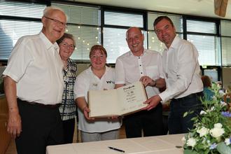 In einer kleinen Feierstunde würdigten Wolfhagens Bürgermeister, Dr. Dirk Scharrer, Ohrdrufs Bürgermeister, Stefan Schambach, und die Vorsitzende des Städtepartnerschaftsvereins Wolfhagen e.V., Christiane Witte, diese Städtegemeinschaft, die Verständnis, Toleranz und den Austausch über regionale, kulturelle und auch politische Grenzen hinweg fördert. „Die Partnerschaft begann in einer Zeit des Umbruchs: Nach dem Fall der Mauer und der Wiedervereinigung Deutschlands stand auch die Stadt Ohrdruf vor enormen Herausforderungen. Verwaltung, Infrastruktur, Wirtschaft - vieles musste neu aufgebaut oder angepasst werden. Und keiner wusste so recht, wie es geht! In dieser Situation erwies sich Wolfhagen als erfahrener, verlässlicher und tatkräftiger Partner, der Ohrdruf wirklich großartig unterstützte“ so Ohrdrufs Bürgermeister Stefan Schambach wörtlich. Er bedankte sich beim anwesenden Altbürgermeister Giselher Dietrich ausdrücklich für diese damalige Hilfe. „Bildlich gesagt hat die Stadt Wolfhagen der Stadt Ohrdruf dabei geholfen schnell und gut aus den damaligen Startblöcken zu kommen und die Chancen, die sich der Stadt nach der Wiedervereinigung boten, wirklich gut für sich zu nutzen“, so Schambach.