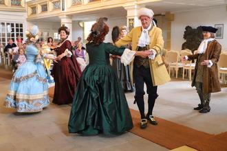 Zum Konzertabend am 13. August präsentierten Tänzerinnen und Tänzer des Freundeskreises „Vive la danse“ höfische Tänze der verschiedenen Perioden des Barock. Nach den Worten von Molière „Nichts ist dem Menschen so unentbehrlich wie der Tanz“ boten sie in ihren prachtvollen Gewandungen einen Einblick in die Welt der Gesellschaftstänze am englischen, französischen und sächsischen Hof vom frühen 17. bis zum späten 18. Jahrhundert.