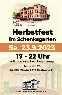 Am 23. September 2023 ab 17 Uhr laden wir alle aus nah und fern herzlich zum Herbstfest in den Gräfenhainer Schenksgarten ein.