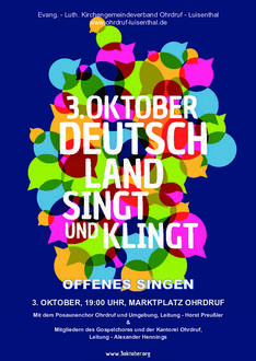 Anlässlich des 30. Jahrestages wurde im Jahr 2020 die Aktion „3. Oktober - Deutschland singt und klingt“ ins Leben gerufen. Deutschlandweit nahmen damals in über 200 Orten mehrere Tausend Menschen an der musikalischen Feierstunde teil. Inzwischen geht die Aktion auch in Ohrdruf ins vierte Jahr und hat sich als Veranstaltung etabliert.