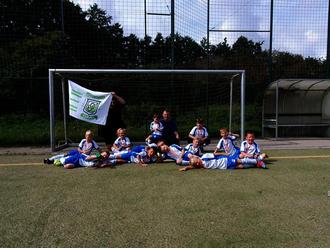 Unsere Jungs erwischten einen Start nach Maß, als Jonas bereits nach 3 Minuten zur frühen Führung einschoss. Die Partie wurde von beiden Teams offen geführt, wobei wir mehr Offensivgefahr ausstrahlten. Paul stellte folgerichtig nach 22 Minuten per strammen Schuss ins kurze Eck auf 2:0. Bis zur Pause legten noch Carlos nach schöner Kombination und Paul, der den Ball aus 16 Metern unhaltbar unter die Latte drosch, zur beruhigenden Halbzeitführung nach. In der 2. Halbzeit zollten beide Teams den hohen Temperaturen Tribut. Trotzdem fielen noch auf beiden Seiten weitere Treffer. Die Gäste verdienten sich durch ihr Engagement zwei Tore, bei denen Leon im Tor machtlos war. Auf Gastgeberseite erzielte Carlos seinen zweiten Treffer und Paul schraubte sein Torkonto auf 4 Treffer hoch, so dass ein ungefährdeter Heimsieg eingefahren werden konnte.