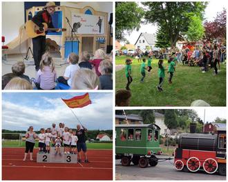 Immer noch in Feierlaune, fand das Sommerfest der Kienbergspatzen nur eine Woche später statt. Alles drehte sich um Indianer. Unterstützt durch den Bauhof, den Förderverein und den Elternbeirat entstand auf dem Sportplatz eine Bühne für das schon lang einstudierte Programm der Kinder. Jede Gruppe beteiligte sich mit einem oder mehreren Titeln. Alle freuten sich riesig endlich mal wieder vor allen Familien so eine tolle Veranstaltung ausrichten zu können. Nach dem Programm konnten sich die Kinder an vielen Ständen amüsieren. Es gab Kinderschminken, Glitzer- Tattoos, man konnte reiten, die Rollenrutsche hinunter sausen, sich richtig auf der Hüpfburg austoben, seine Trefferquote beim Zapfenwerfen beweisen und sich kugelrund futtern an den vielen Leckereien wie Popcorn, Kuchen und auch Bratwurst.
