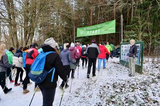 Nach einer gemeinsamen Erwärmung machten sich die Nordic Walker auf die rund zehn Kilometer lange Strecke. Diese präsentierte sich bestens präpariert und war durchgehend gut ausgeschildert. Nach etwa fünf Kilometern wartete auf die Teilnehmer eine willkommene Verpflegungsstation mit Obst sowie heißen Getränken, die neue Energie für den zweiten Streckenabschnitt lieferte.