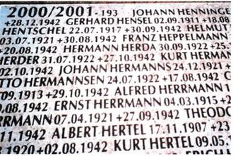 Man ging damals öfter, vom letzten Briefwechsel des vermissten zu den Angehörigen aus, der letzte Briefwechsel von Hermann Herda, war vom 24.12.1942 (Heiligabend), sodass man das Jahr 1943 als Todesjahr am Denkmal eintrug. Er ist aber nach der Deutschen Kriegsgräberfürsorge, einen Tag später, nach dem letzen Brief am 25.12.1942 (1. Weihnachtsfeiertag) gefallen.