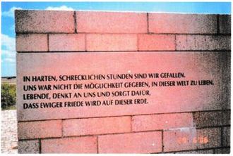 „In harten, schrecklichen Stunden sind wir gefallen, uns war nicht die Möglichkeit gegeben, in dieser Welt zu leben. Lebende, denkt an uns und sorgt dafür, dass ewiger Friede wird auf dieser Welt“