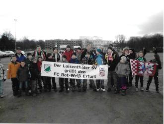 Auch eine Freude konnte ich unseren Nachwuchs-Fußballern machen. Bei einer Ausschreibung von FC Rot-Weiß-Erfurt war meine Bewerbung erfolgreich, so waren wir zu einen Punktspiel ins Erfurter Stadion eingeladen, mit Besichtigung der Innenräume, Kontakt mit den Spielern und einen Imbiß gab es auch noch.Es war ein besonderes Erlebnis für unsere jungen Fußballer. Die Erfolge häuften sich im Jahr 2011. Unsere 1. Mannschaft schaffte den Aufstieg in die Kreisliga, die