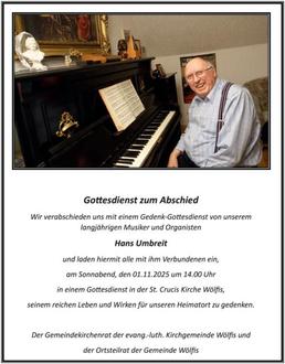 | 14:00 Uhr | Gedenk-Gottesdienst für Hans Umbreit |
