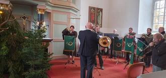 Mit dieser kurzen Legende begrüßte Pfarrer Lörzer am 05.11.2023 die Gemeinde zur Hubertusmesse in der weidmännisch geschmückten Sankt Marienkirche Crawinkel. Die Bläsergruppe der Kreisjägerschaft Gotha übernahm die instrumentale Gestaltung der Messe und es ertönten, wie immer sehr feierliche Klänge.