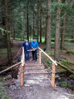 Zu DDR Zeiten wurde die Brücke von Forstarbeitern gepflegt und notfalls auch instand gesetzt. Meine Mutter Marie Pflügner war bei diesen Arbeiten oft dabei, denn sie war über 40 Jahre beim staatlichen Forstwirtschaftsbetrieb beschäftigt.Nach der Wende war natürlich alles anders, aber nicht in jeden Fall besser. deshalb suchte ich in unseren Verein Mitglieder zu finden, die diese Brücke mit mir zusammen erhalten wollten. Mit Waldemar Ring fand ich einen gleichgesinnten. Gerhard Pflügner und Waldemar Ring kümmerten sich um den Erhalt dieser Brücke nun fast 35 Jahre, natürlich ehrenamtlich. In all den Jahren haben wir so eine massieve Zerstörung noch nicht erlebt.was uns sehr unglücklich macht.
