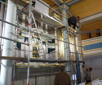 Nachdem das Gerüst für die Orgelrestaurierungsarbeiten längst abgebaut und nicht mehr benötigt wurde, mussten die Gerüstteile natürlich wieder herunter von der 2. Empore und das ohne Aufzug! Benötigt wurden auch Teile für das Einrüsten am Pfarrhaus. Dazu gab es am Montag, den 6. Oktober einen kurzfristigen Arbeitseinsatz. Gemeinsam geht es besser und so packten wir nach telefonischer Rücksprache gemeinsam an. Ab 14.00 Uhr trugen also Holger Borchmann, Bernd Weidner, Gunar und Ursula Rolapp und Thomas Zang alle in der Kirche nicht mehr benötigten Gerüstteile hinunter vor die Kirche. Dazu kam dann noch Hugo Borchmann, der sie dann mit auf Hänger und Transporter lud. Nach 1 1/2 Stunden hatten wir es geschafft und waren froh über den gelungenen Einsatz. Danke an Alle, die hier gemeinsam für unsere Kirche eingestanden haben. Es sind oft viele kleine Bausteine, aber sie helfen ungemein das Ganze zu bewahren. Nun können hier im Inneren die Arbeiten an den Emporen-Decken weitergehen. Lange geplant waren Untersuchungen der Decken, damit nicht wieder ein Absturz uns überrascht, wie an Heiligabend 2021. Inzwischen müssen wir damit auch temporäre Notsicherungen an 5 - 7 Deckenelementen in unterschiedlichem Umfang verbinden, um einem Absturz entgegenzuwirken und die Decken zu einem späteren Zeitpunkt bei genügend finanziellen Mitteln zu restaurieren. Es war ein Schreck, als ich am 06.07.2025 mit Besuchern von Dorle und Uwe Kraußer in der Kirche stand und wir die ersten Risse und Absenkungen bemerkten. Darüber dann mehr zu einem anderen Zeitpunkt. Doch ist es eine stetige Aufgabe und ständig sind wir verpflichtet unser Aller größtes Haus in unserer Gemeinde zu pflegen und es zu achten, damit es keinen Schaden nimmt.