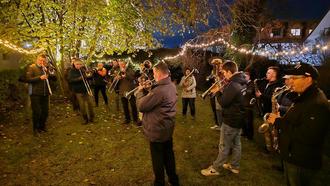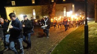 Vor der Kirche wartete bereits die Freiwillige Feuerwehr Wölfis und die Kinder- und Jugendfeuerwehr Wölfis sowie die „Kapelle ohne Namen“ und weitere Kinder und Eltern. Mit Fackeln und Laternen ging der Umzug durch den Ort um dann wieder am Kirchhof zu enden und im Pfarrgarten seinen Ausklang zu finden.