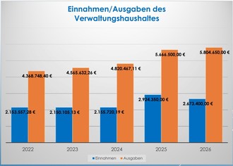 Der Haushalt 2026 der Stadt Ohrdruf hat ein Gesamtvolumen von 29,561 Millionen Euro. 22,2 Millionen Euro entfallen auf den Verwaltungshaushalt und 7,34 Millionen Euro entfallen auf den Vermögenshaushalt aus dem insbesondere die Investitionen der Stadt finanziert werden. Bei der Einbringung des Haushaltes gab es eine große Deckungslücke zwischen den prognostizierten Einnahmen und den notwendigen bzw. gewünschten Ausgaben, die Schritt für Schritt durch Einsparungen, durch das Setzen von Prioritäten aber auch durch geringfügige Einnahmeerhöhungen geschlossen wurde. So konnte auch die ursprünglich ausgewiesene Aufnahme von Krediten im Kernhaushalt der Stadt vermieden werden. Hier wird nur ein Förderkredit des Landes aus dem neuen Kommunalen Investitionsprogramm genutzt, für den das Land Zins und Tilgung leistet. Für Investitionen der Stadtwirtschaft Ohrdruf zur Komplettsanierung eines Wohngebäudes in der Strengestraße ist allerdings eine Kreditaufnahme der Stadtwirtschaft notwendig und vorgesehen.