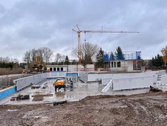 Blick auf die Schwimmbadbaustelle im Spätherbst 2025.