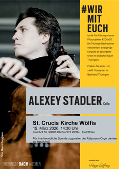 | 14:30 Uhr | „wirmiteuch“-Konzert im Rahmen der Thüringer Bachwochen Alexey Stadler; Artist in Residence bei der Thüringer Philharmonie Gotha-Eisenach |