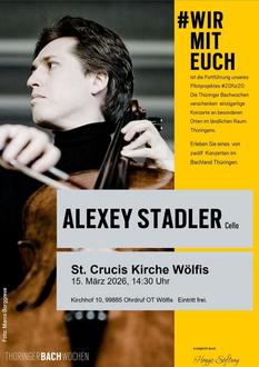 In einer besonderen Kooperationsveranstaltung der Thüringer Bachwochen präsentiert der renommierte Cellist Prof. Alexey Stadler als Artist in Residence der Thüringer Philharmonie Gotha-Eisenach ein Benefizkonzert im Rahmen des Projekts #WIRMITEUCH. Am Ort der historischen St. Crucis Kirche zu Wölfis lädt das Konzertprojekt dazu ein, die Restaurierung der Ratzmann-Orgel zu unterstützen - und das ganz im Zeichen der Bachmusik sowie weiterer Meisterwerke.