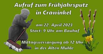 Macht bitte mit für ein sauberes Crawinkel. Nutzt weiterhin die schönen Tage bis dahin um vorab die Gehwege und Straßen vor euren Häusern und Grundstücken zu reinigen.