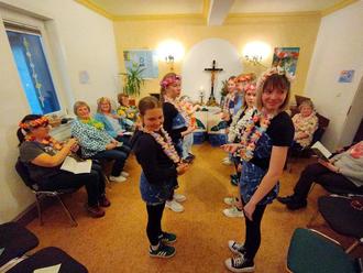 Mit "Kia orana!" begrüßten wir uns, am 07. März zum Weltgebetstag 2025. Worte die mehr bedeuten als ein einfaches "Hallo": "Ich wünsche dir, dass du lange und gut lebst, dass du leuchtest wie die Sonne und mit den Wellen tanzt." Und dieses "Kia orana" begleitete uns während des gesamten Gottesdienstes, mal als Liedruf, als Textzeile und als Zuspruch unter den Gottesdienstbesuchern, verbunden mit einem Lächeln und freundlichen Worten an unser Gegenüber. Nach der Landesvorstellung, mit vielen Bildern und interessanten Informationen über die Cook-Inseln, zogen die Kinder/Jugendlichen der Christenlehre und Jungen Gemeinde mit einem selbstgebauten Schiff in den Gemeindesaal ein und eröffneten so den Gottesdienst. Begleitet wurden sie von den Klängen ihrer selbstgebastelten Trommeln, mit denen sie das Wellenrauschen nachahmten. Wir tauchten ein in die Inselwelt des Pazifiks. In der Gottesdienst-Liturgie, die von den Frauen der Cook-Inseln gestaltet wurde, erfuhren wir von den Sorgen und Problemen der Frauen, aber auch deren tiefe Liebe zur Heimat und ihrem Engagment für die Natur und ihre Tradition. Als besonderen Höhepunkt zeigten uns die Kinder/Jugendlichen einen landestypischen Tanz. Beendet wurde der Abend wieder mit vielen Köstlichkeiten zum Probieren. Gekocht, gebacken und zubereitet nach Original-Rezepten der Cook-Inseln. Wobei sich jedes Jahr die Beschaffung der, manchmal recht exotische, Zutaten schon als abenteuerlich erweißt. Na, neugierig geworden?