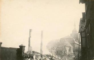 Der Wölfiser Heinz Wassermann erinnerte sich an diese Nacht. In Richtung Crawinkel sahen sie ein schauriges Flammenmeer und sie hörten das klägliche Brüllen der Rinder, die in ihren brennenden Ställen angebunden waren und umkamen. Die Häuser und das Vieh mussten die Crawinkler sich selbst überlassen. Viele waren in den Wäldern und im Jonastal. Daher kamen auch am 9. Und 10. April insgesamt „nur“ 6 Einwohner ums Leben. Dies hatten selbst die Amerikaner nach ihrem Einmarsch verwundert. Ilse Hoyer erinnerte sich ebenfalls an diese schicksalhafte Nacht. Bei Fritz Ostermann in der Hintergasse brannte der Kohlenstall. Am folgenden Tag ging es weiter. Es brannte vom Spediteur Hugo Kloß an und Fässer mit Kraftstoff knallten hoch. Den Lkw und den Traktor der Spedition hatte die Wehrmacht schon weggenommen. Alle verfügbaren Männer waren bei der Brandbekämpfung eingesetzt. Jetzt musste auch Jauche zum Löschen mit verwendet werden. Nachts gegen 1 Uhr war es dann geschafft und die Brände eingedämmt. Doch kaum eine Stunde Pause, dann brannte bei uns auf dem Markt die ganze Ecke. Sieben Häuser und weitere Nebengebäude standen in Flammen.