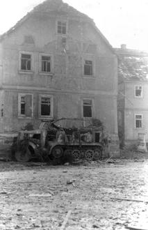 Ab 6 Uhr in der Früh rückten amerikanische Truppen in Kompaniestärke in das Dorf. Während die Amerikaner zuerst den Ortsteil oberhalb der Bahnlinie besetzten, flüchteten die letzte deutschen Soldaten in Richtung Frankenhain. Noch während der Besetzung kam es zu einem seltsam komischen Ereignis. Während das Oberdorf schon besetzt war, kam ein deutsches Fahrzeug mit mehreren Soldaten plötzlich aus dem Wald und war auf der Suche nach der Truppe und der Fluchtroute. Einwohner wiesen ihnen den Weg querfeldein nach Frankenhain vorbei an den amerikanischen Truppen.