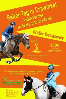 Auch in diesem Jahr veranstaltet der Reitsportverein Ohrdruf-Crawinkel e.V. ein Reitturnier ganz im Zeichen des Nachwuchses. Am 06.05.2023 im Reitstall Ludewig, können sich Reiter, egal ob Jung oder Alt, mehreren Prüfungen stellen.
