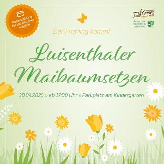 Luisenthal freut sich auf ein geselliges Frühlingsfest! Am 30. April ab 17 Uhr laden wir herzlich zum traditionellen Maibaumsetzen auf den Parkplatz des Kindergartens ein.