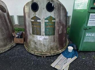 Erneut wurde in Rehmen bei den Glascontainern privater Müll abgeladen.
