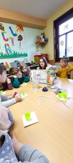 In diesem haben sie kleine Pflanztöpfe mit Samen und Erde befüllt und im Anschluss in selbstgestaltete Gewächshäuser gestellt.