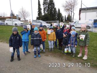 Schließlich fanden wir bunte Tüten mit Leckereien auf dem Spielplatz, am „Rammelberg“ und in unserem Garten. Danke, lieber Osterhase!