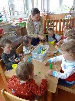 Das Fühlen und Formen bereitet den Kindern große Freude und es entstehen kreative Gebilde sowie viele lecker Knete-Kuchen und -Kekse.
