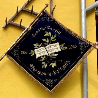 Auch die Gesangvereinsfahne Oberoppurg - Solkwitz wurde nach Oberoppurg übergeben. Die Gemeinde freut sich sie zum nächsten Fest wieder in Solkwitz zeigen zu können.