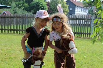 Am 22. Juni feierten wir im Kindergarten ein Indianerfest. Unser Garten hatte sich in ein richtiges Indianerdorf verwandelt - es gab kleine und große Tipis, eine richtige Feuerstelle und „Pferde“ zum Reiten.