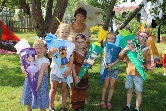 Als Höhepunkt dieses Festes haben zwei Indianer den Schulanfängern ihre großen und auch den anderen Kindern ihre kleinen Zuckertüten überreicht.