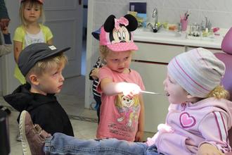 Die Kinder und Erzieherinnen des