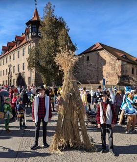 Bei regelrechtem „Kaiserwetter“ fand in diesem Jahr der traditionelle Strohbärumzug am Fastnachtsdienstag statt. Die Schülerinnen und Schüler der 8. Klassen hatten sich gut darauf vorbereitet. Der Bürgermeister, als Schirmherr, hatte zu der Zusammenkunft im Vorfeld alle Beteiligten eingeladen. Dabei wurden alle organisatorischen Fragen besprochen und geklärt.
