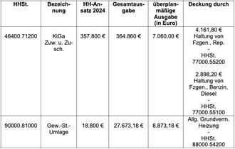 Der Stadtrat der Stadt Orlamünde beschließt in seiner öffentlichen Sitzung am 27.03.2025 den nachfolgend aufgeführten überplanmäßigen Ausgaben für das Haushaltsjahr 2024 zuzustimmen.