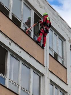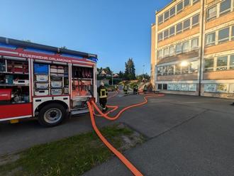 Einsatzübung der Feuerwehr am Abrissgebäude der Schule