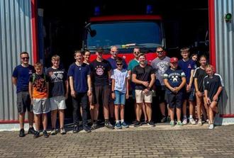 Die Jugendfeuerwehr kurz vor der Abfahrt in das Zeltlager mit ihren Betreuern.
