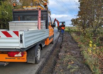 Das verbliebene alte Bankett wurde bis auf tragfähigen Untergrund abgetragen und der Untergrund für den Asphalteinbau vorbereitet. Foto: Mario Streit