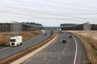 Für das Einbringen des Schutznetzes für die Montage der Leiterseile wurde die Autobahn am 27. September für eine Viertelstunde in beiden Richtungen voll gesperrt. Foto © 50Hertz