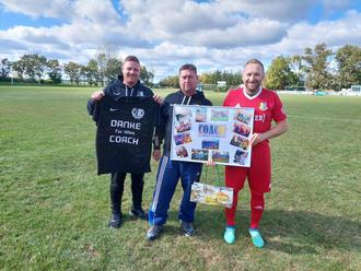 Vor dem Spiel gegen den FSV Orlatal verabschiedeten die Männermannschaft sowie der Vereinsvorstand unseren langjährigen Herrentrainer Alexander Schuldes.