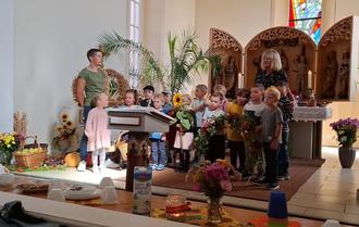 Den Auftakt unserer Erntedankwoche bildete ein wunderschöner Erntedankgottesdienst in der Kirche. Die Kinder der großen Gruppe hatten dafür ein kleines Programm aus Liedern und Gedichten vorbereitet und stolz vorgetragen - ein gelungener Start in eine erlebnisreiche Woche.